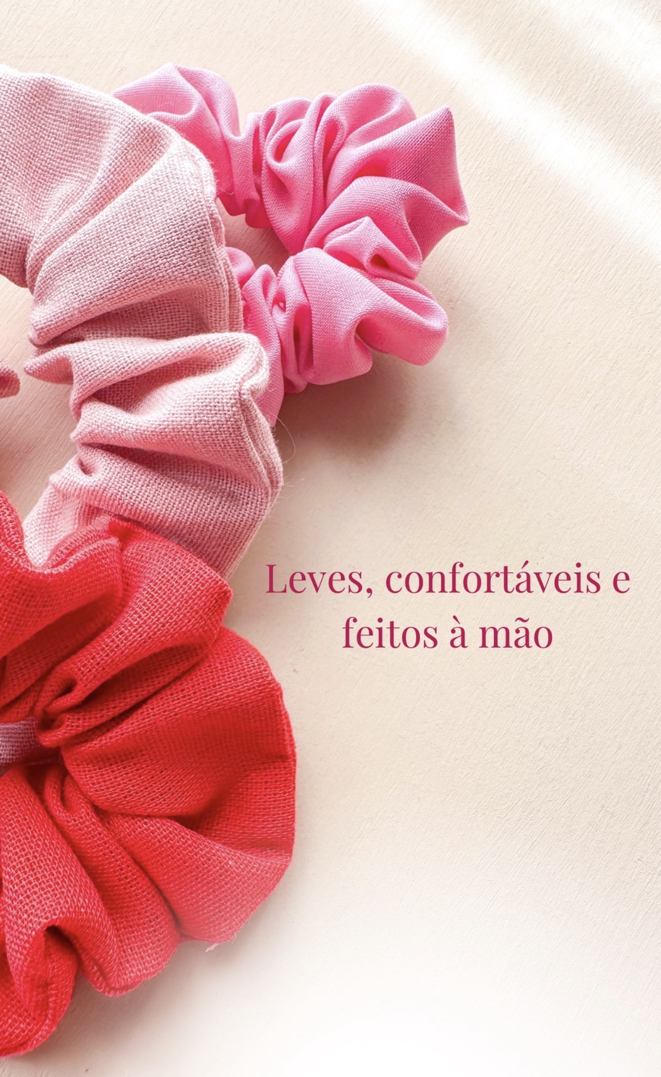 Cada peça é produzida artesanalmente, tornando cada scrunchie único.